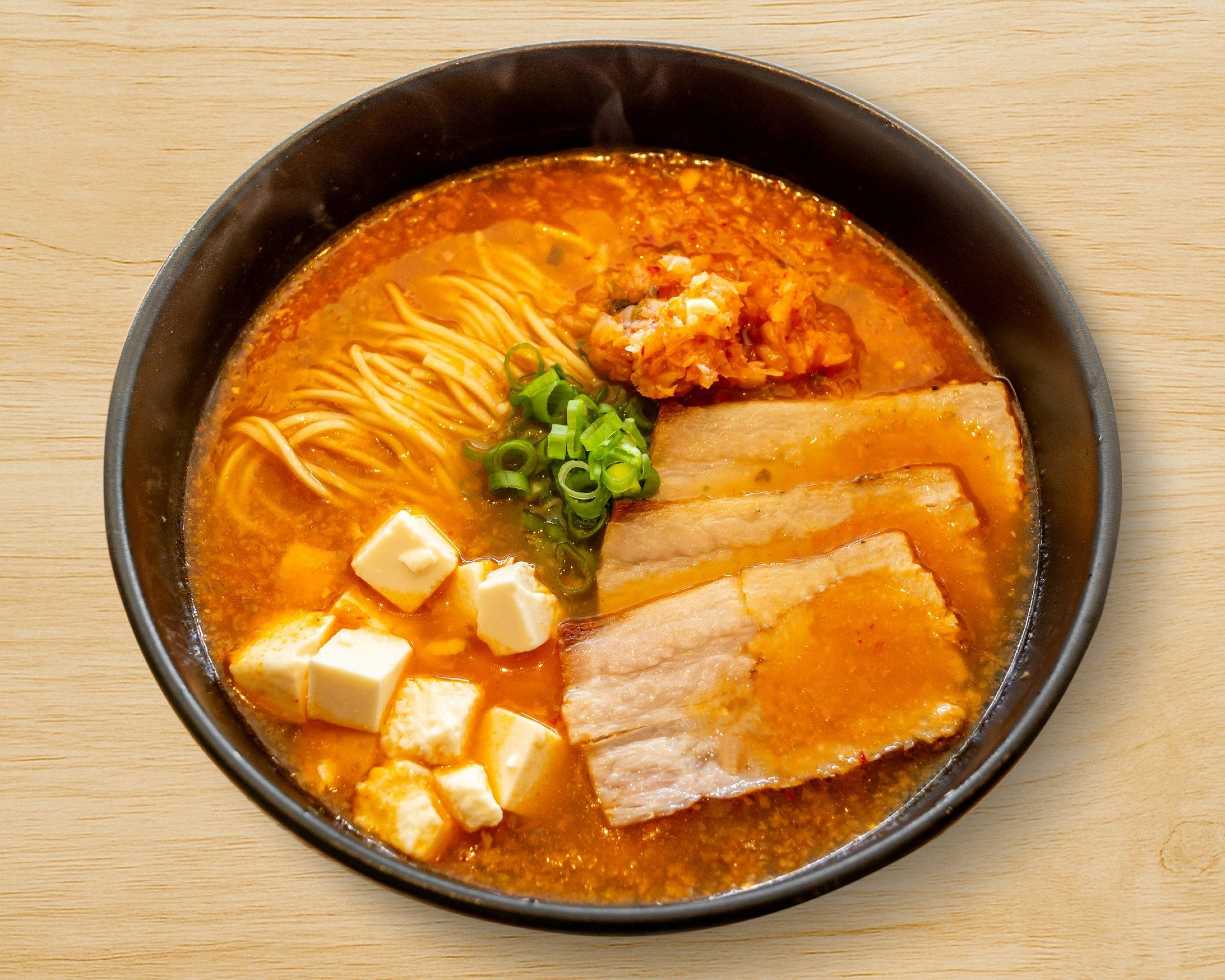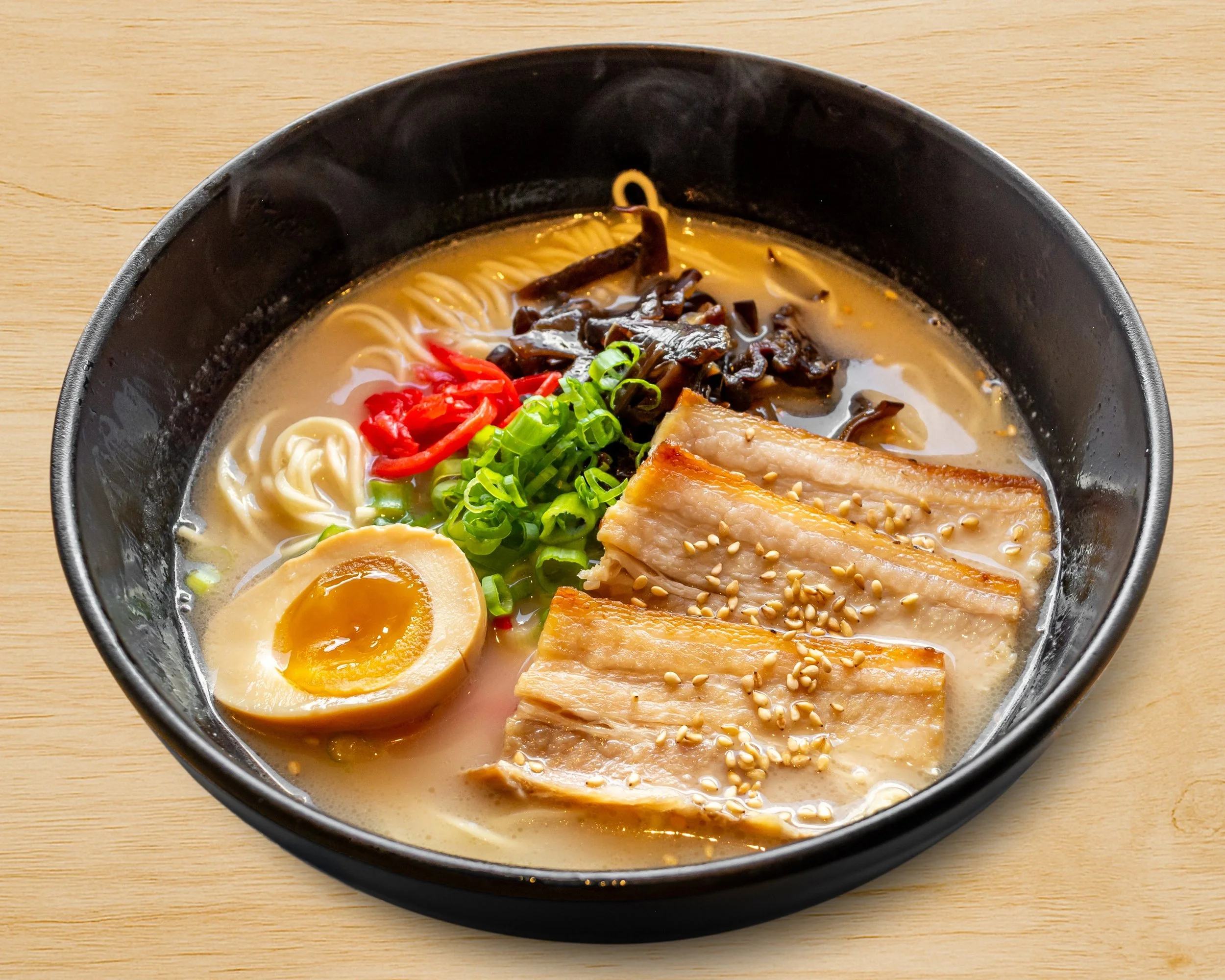 Pork Bone Broth, Cheshire Pork Belly, *Seasoned Soft Boiled Egg, Wood Ear Mushroom, Beni Shōga, Scallions, Komi Oil, Sesame Seeds