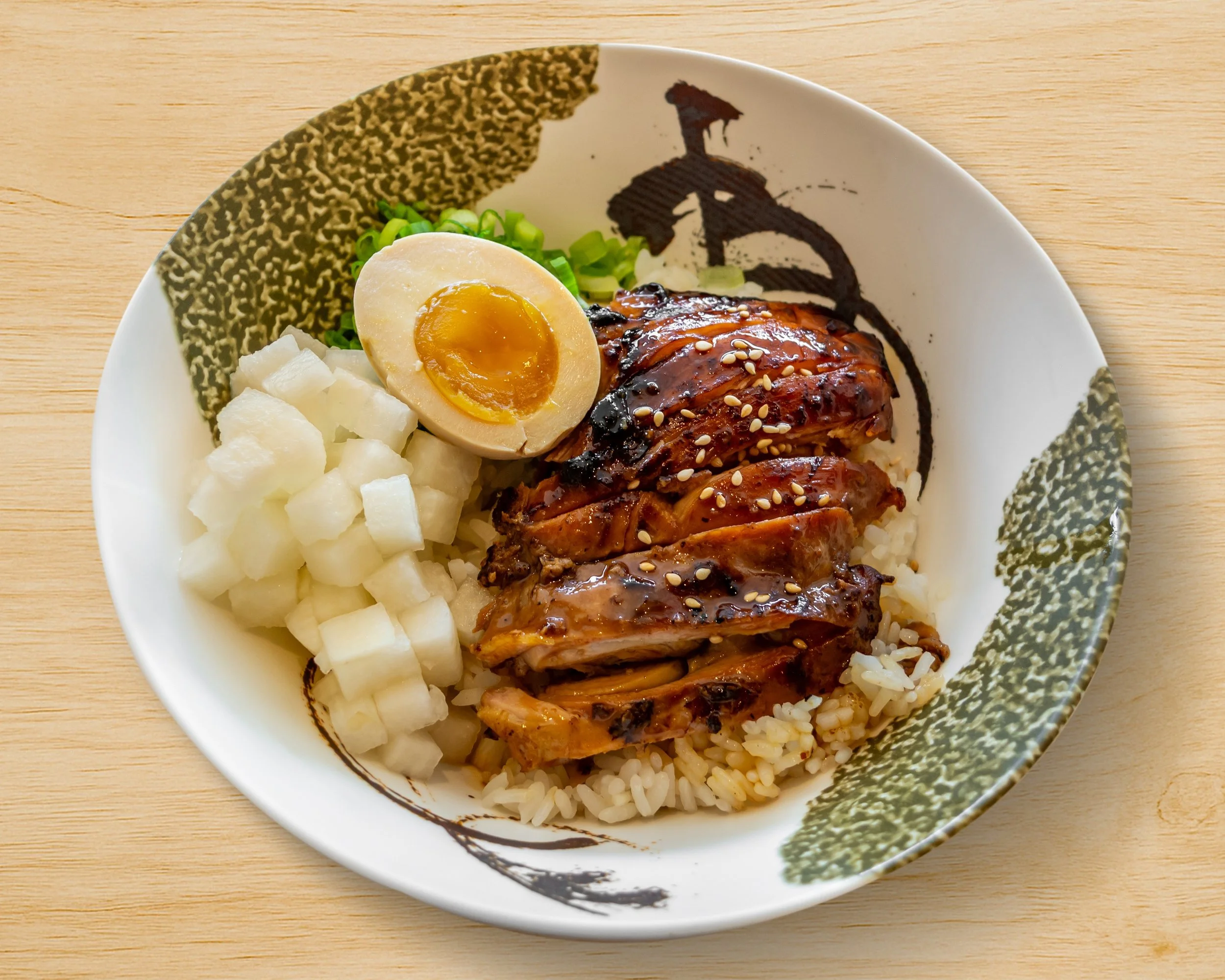 Teriyaki Chicken Thigh, *Seasoned Soft Boiled Egg, Teriyaki Glaze, House Kewpie Mayo, Yuzu-Pickled Daikon Radish, Scallions
