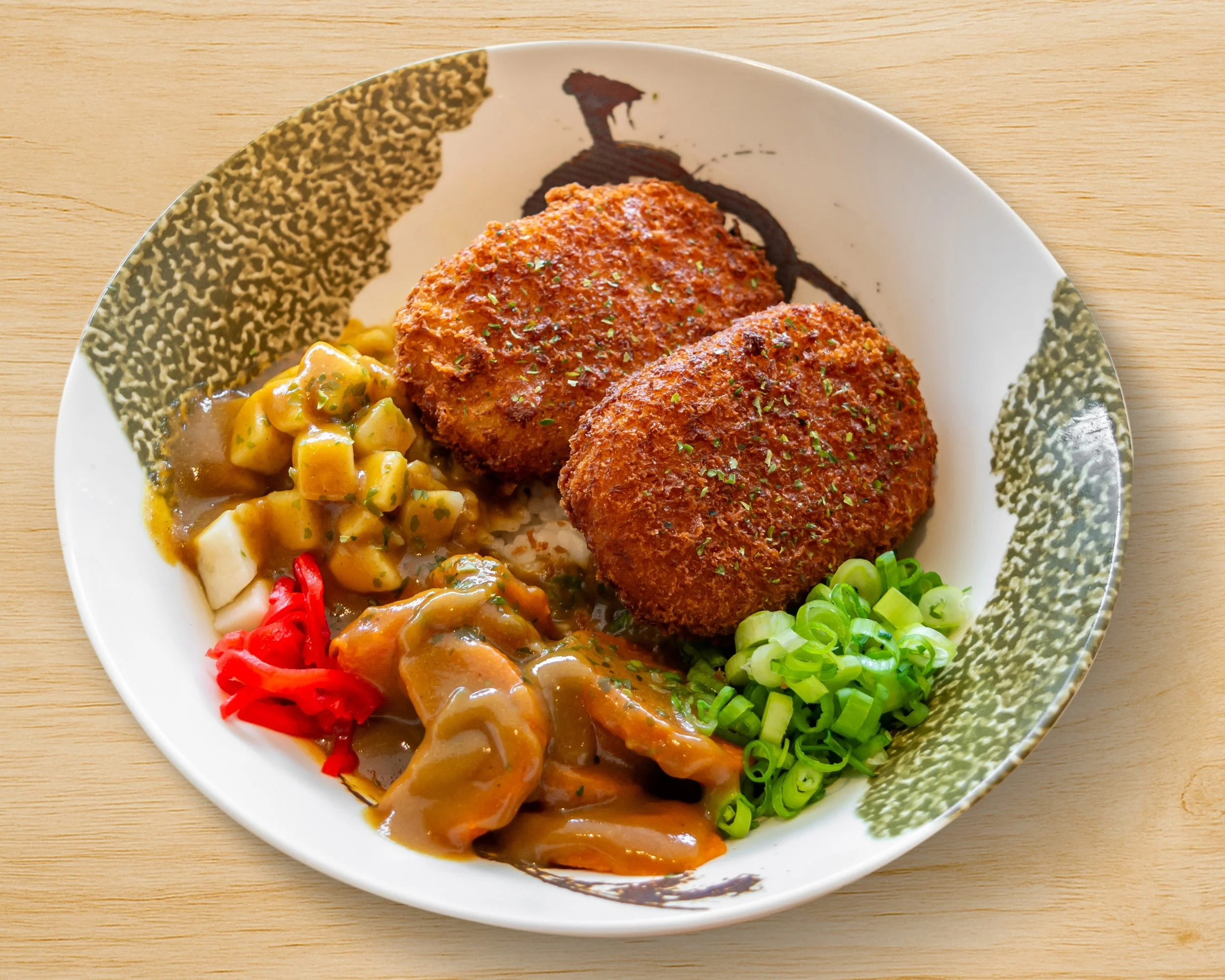 japanese curry rice bowl w/ vegetable croquette – $11.50